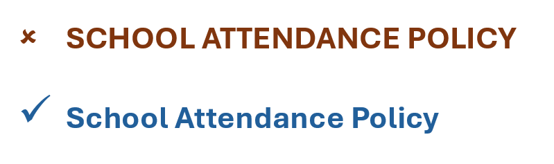 Capitals are commonly misused in titles and subheadings. These should not be in capitals, even if the document is important.